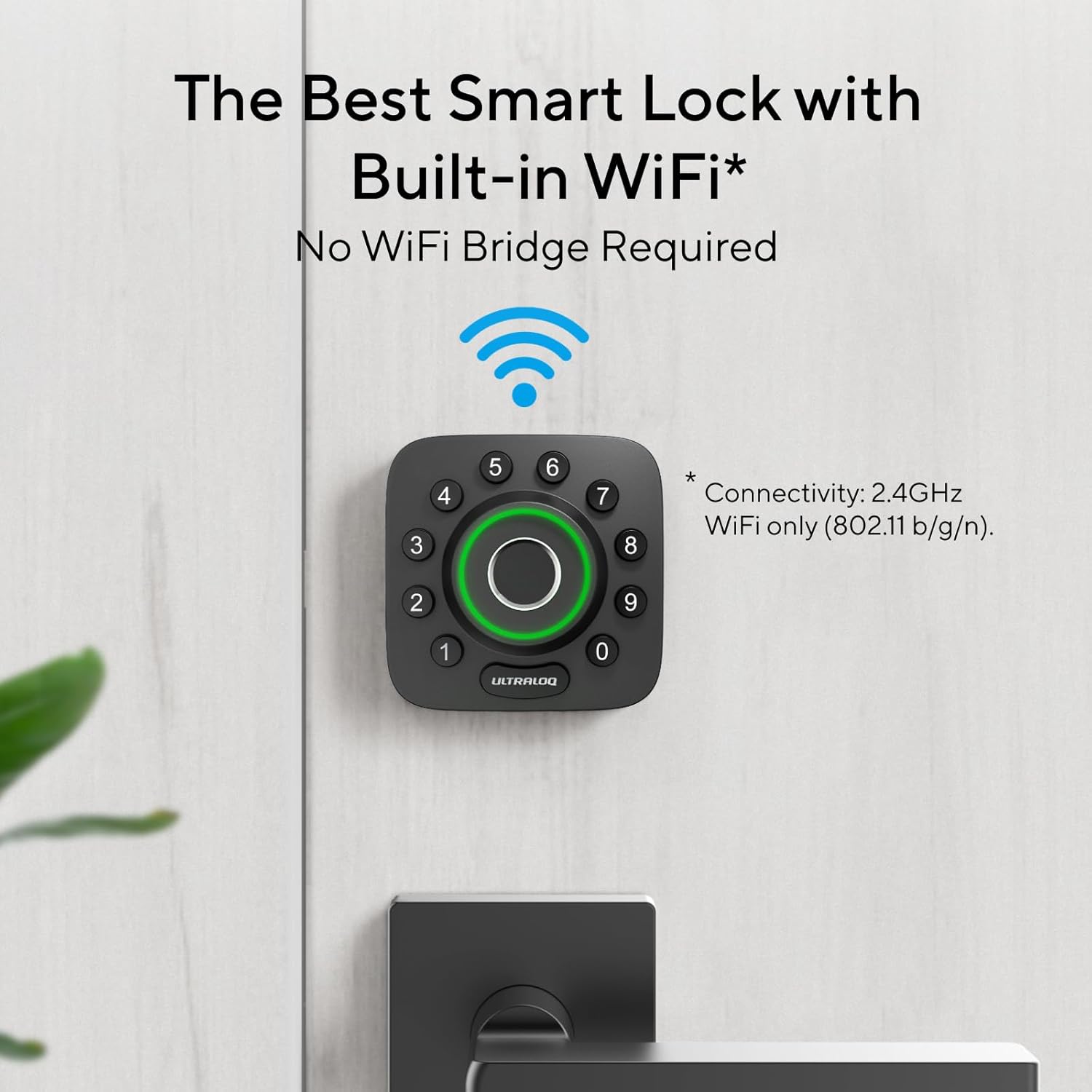 ULTRALOQ U-Bolt Pro WiFi Smart Lock with Door Sensor, 8-in-1 Keyless Entry Door Lock with Built-in WiFi,Fingerprint ID,App Remote Control,Auto Unlock,Door Status Alert,WiFi Deadbolt Door Lock