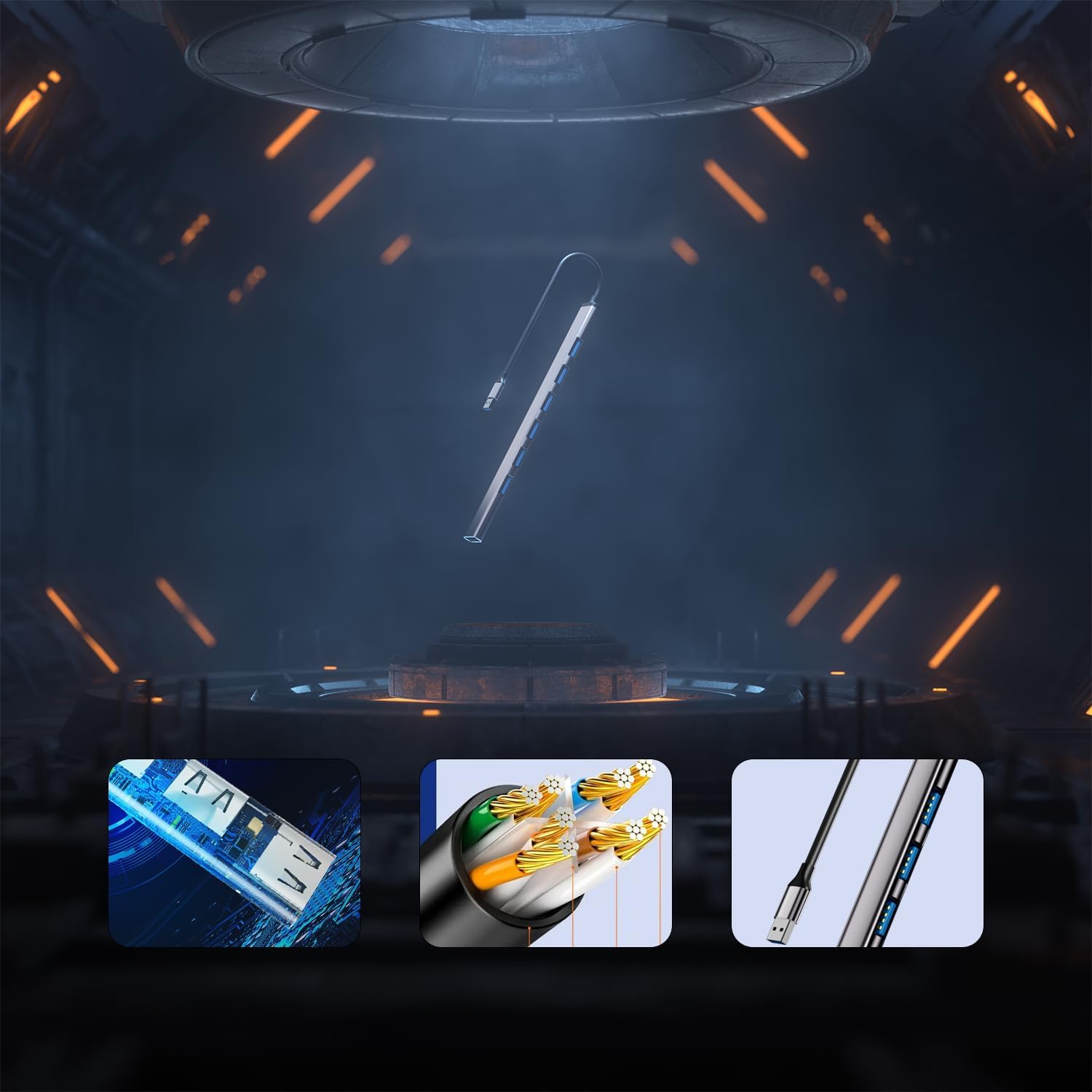 【7-in-1 Data Hub with High-speed】USB 3.0 X1 + USB 2.0 X6. Full USB 3.0 SuperSpeed data transfer up to 5Gbps, 10x faster than USB 2.0.Transfer files, HD movies and songs to your USB devices in seconds. [Charging Not Supported]