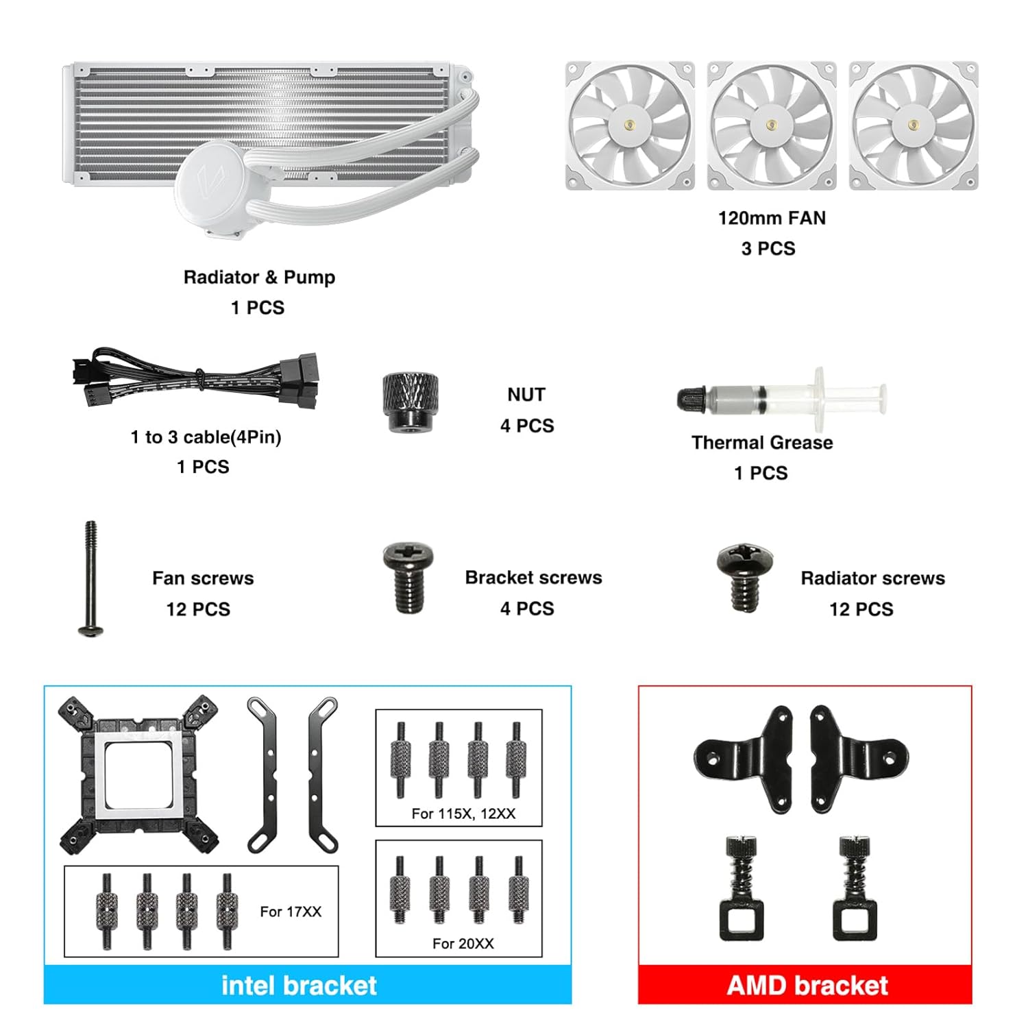 Better Cooling Performance: With a more efficient cold plate, spraying copper bottom, proprietary pump and fans optimized for static pressure to make sure the excellent heat transfer from cpu.