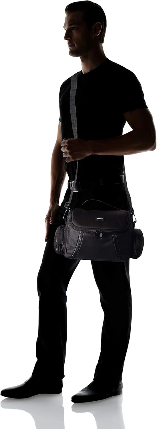 Large Vivitar Gadget Bag for Cameras and Camera Accessories with adjustable shoulder strap, padded interior, and padded handle