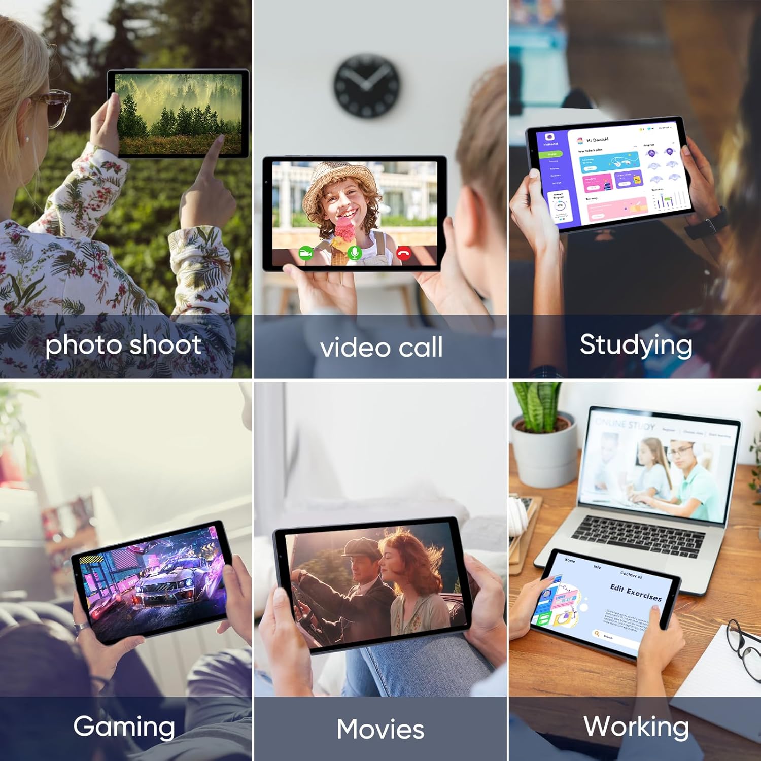 😃【10.1 Inch IPS Display】 10.1 inch android tablet equipped with high resolution of 10.1 inch 1280*800 IPS display. Sizing up to 10.1 inches, you get more space, best choice for movie and video viewing and site browsing. Split screen feature allows you to take notes and watch videos at the same time. The front 5MP and rear 8MP cameras can easily satisfy video calls, online learning, etc.