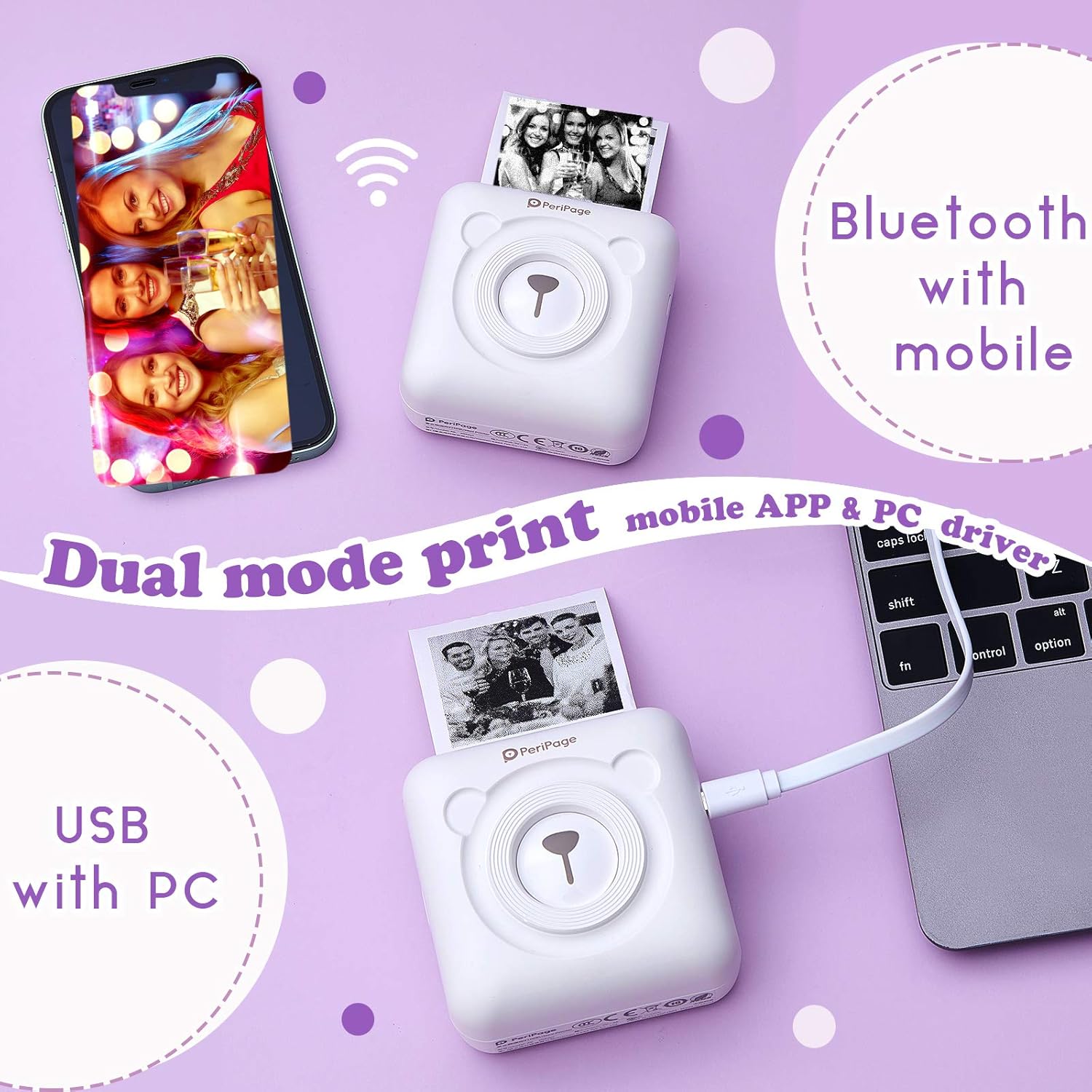 Usage tips: portable wireless photo printer supports connection with smartphone and PC via USB cable, and please follow the instruction in the user guide and download the relative driver on your phone