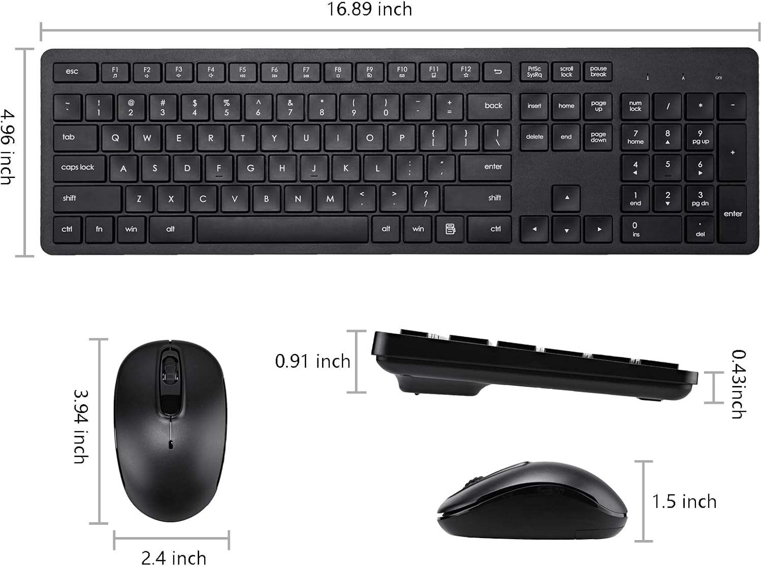 Full Sized Keyboard and Mouse Combo: The US QWERTY keyboard features a tilt angle for the great typing position, which provides you with a comfortable and accurate typing experience, prevents wrist fatigue. The ergonomic mouse with a contoured shape that fits perfectly in the palm of your hand and will provide hours of work comfortably. 1600 DPI resolution enables smooth, fast and precise control on most surfaces. Quiet clicks allow you to focus on your work or play without disturbing others