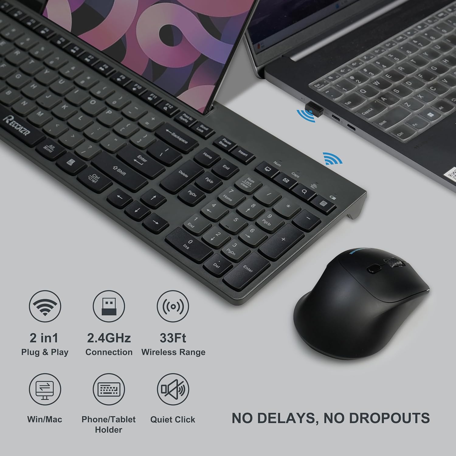 RECCAZR wireless keyboard has multimedia shortcuts that can easily to instant access music, volume, browser, email, etc.