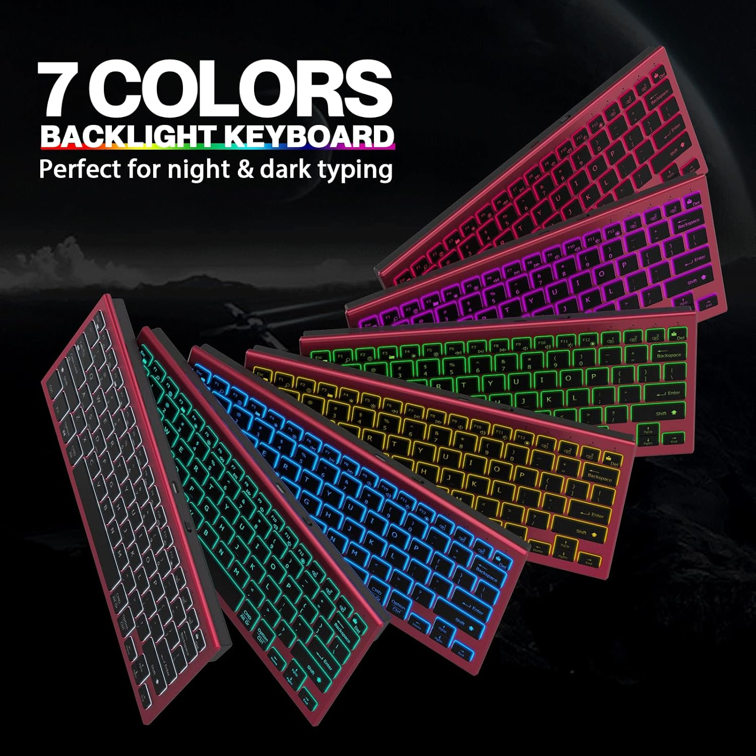 Wireless Keyboard Mouse, Ultra Slim Bluetooth 2.4G Slient Wireless Keyboard and Mouse Combo with Backlit, Multi-Device USB Rechargeable Keyboard Mouse for Laptop PC Windows Desk (Wine)