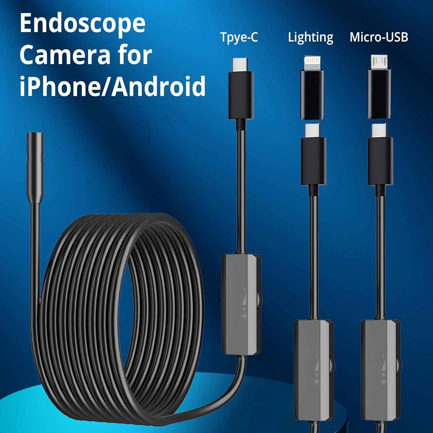 【 Wide Compatibility】 Endoscope comes with three adapter for both Android(Android 4.4+) and iOS systems. It does not require the use of WiFi and other complicated settings. You can download UseePlus APP from App Store or scan the QR code on the instruction manual. After opening the APP just connect it to your mobile phone and follow the instruction manual
