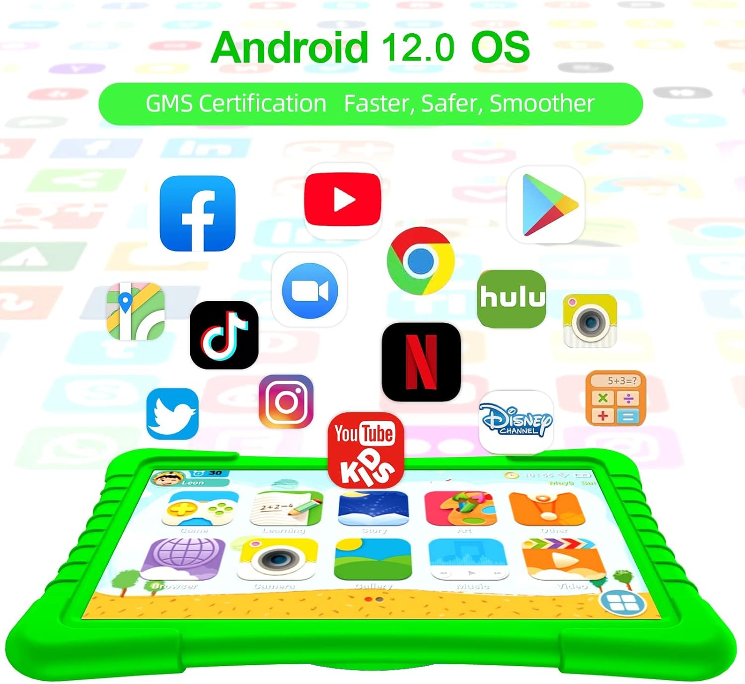 【Parental Control Mode】Android 12 tablet is specially designed for kids with the iWawa Kids app for music, drawing, learning, stories, calculations, games and more. Parents can set separate profiles for each kid, add or block apps, set screen time limits, and lock their kids tablets