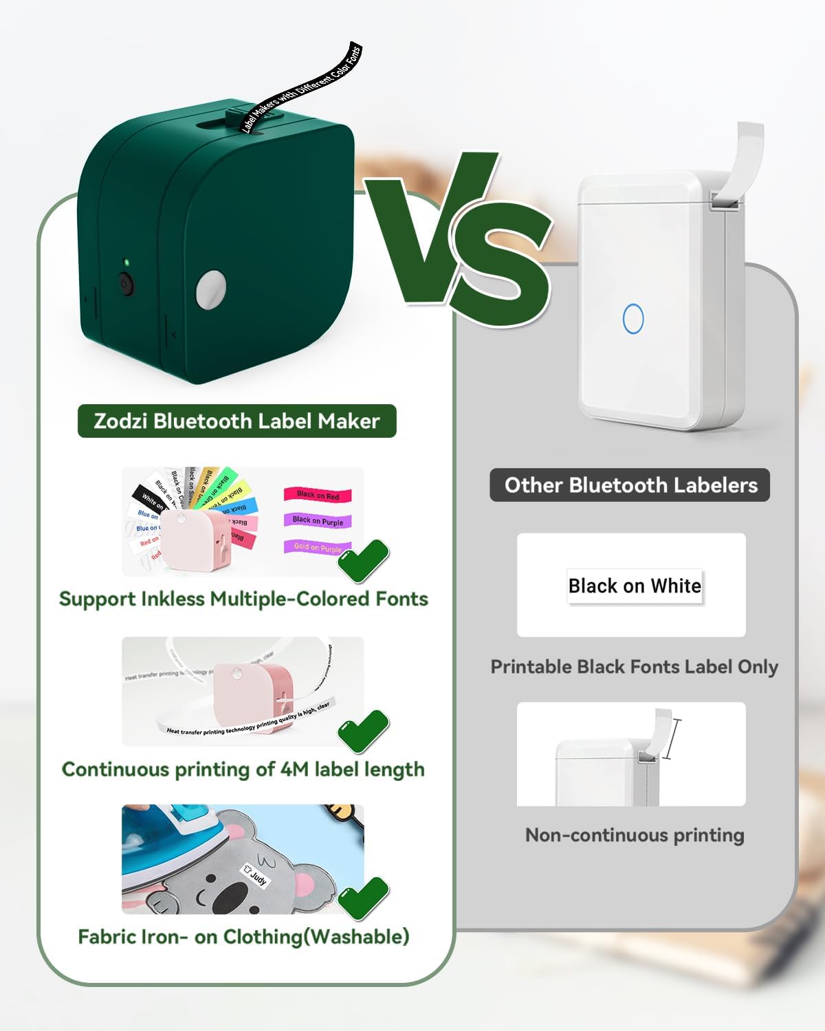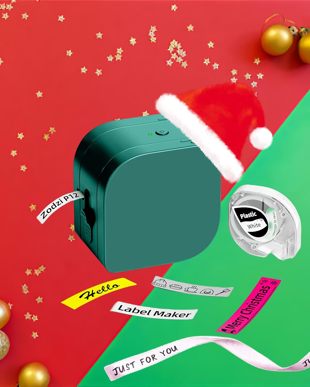 Zodzi Label Makers, Label Maker Machine with Tape P12, Portable Mini Thermal Inkless Label Printer with Fonts, Bluetooth Sticker Maker for Home Office Organization Labeling, Gifts
